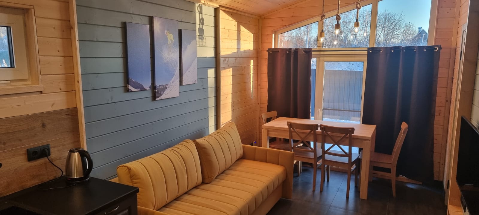 • просторная кухня-гостиная с раскладывающимся диваном